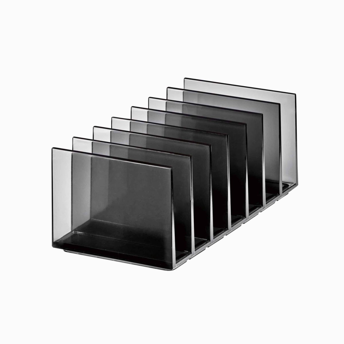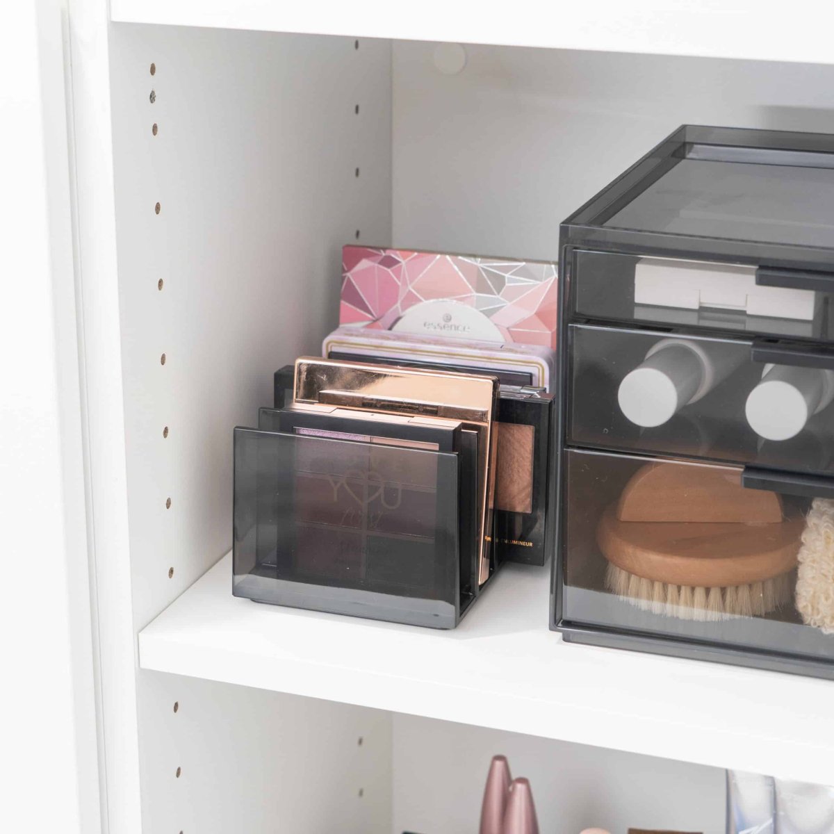 Paletter fulde af skønne farver til øjnene er altså bare noget af det bedste, hvis man er en rigtig makeupelsker. Men paletterne kan være svære at organisere, for det ser hurtigt lidt rodet ud, hvis man stabler dem, og når de står på højkant, kan de ikke stå selv. Ada har løsningen – hun er nemlig den skønneste paletteholder i semitransparent, sort plast, som gerne vil holde op til 7 af dine bedste paletter.