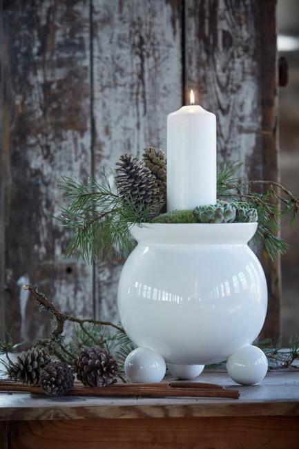 Populär Anya kruka med runda kulfötter. Lika fin året om som till Jul. Krukan har formen av den klassiska kulljusstaken och passar perfekt till blommor, lökar och andra arrangemang. Material: Dolomit Färg: Vit Mått: B 18 x H 20 cm. Öppning upptill Ø 12,5 cm