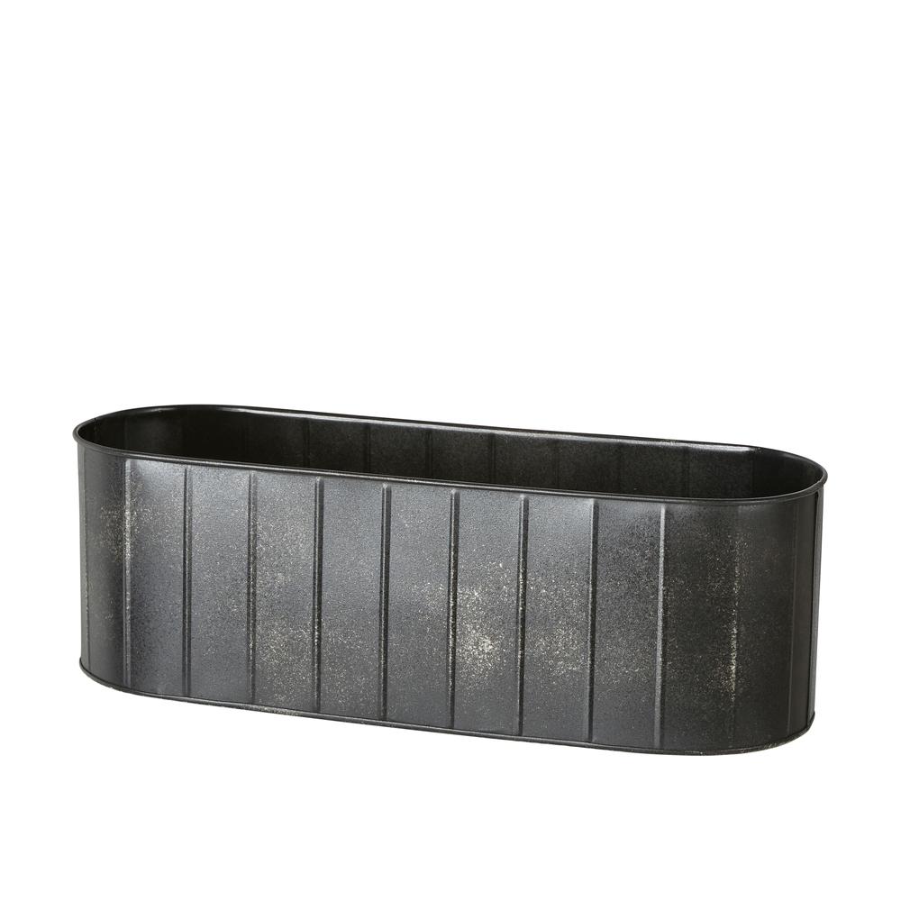 Balkonglåda / Planteringslåda / Blomlåda i svart metall. Oval form med ”räfflor”. Vi har denna balkonglåda i 3 storlekar.