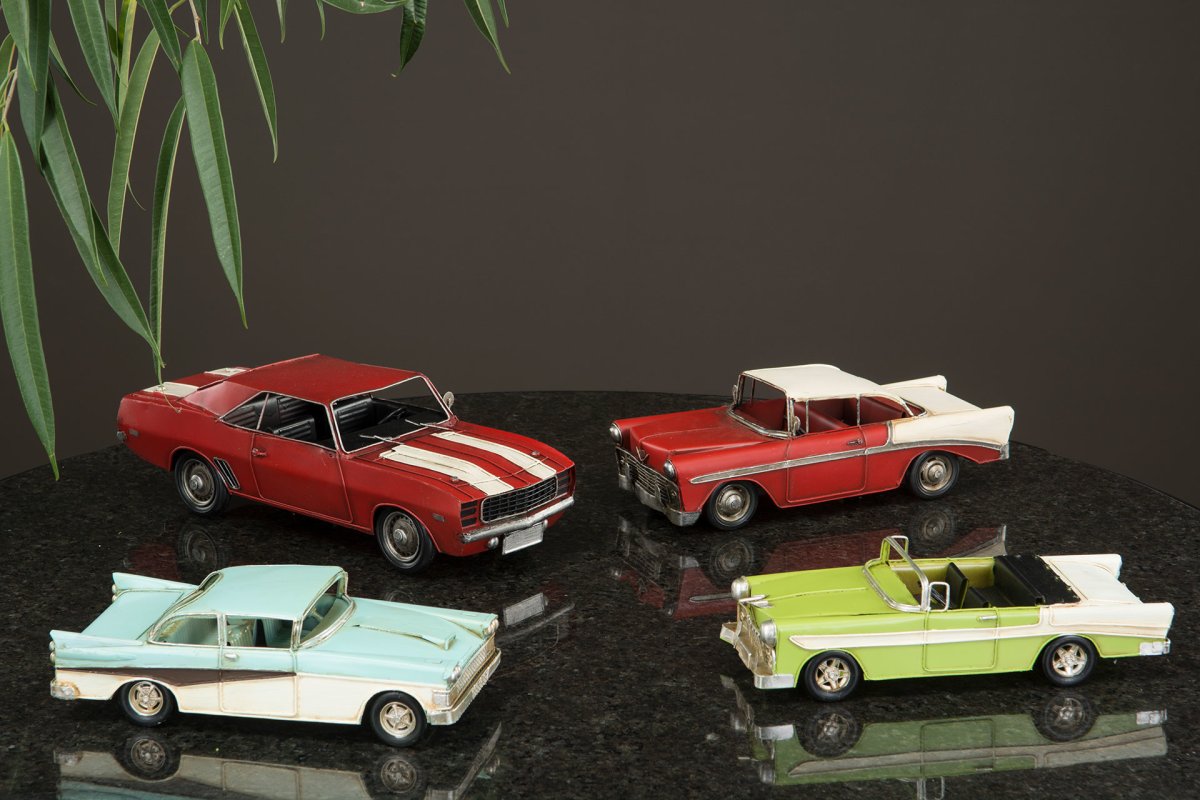 Charmig Camaro i vintagestil. Handgjord röd / vit målad metall. Den perfekta presenten till den biltokige!