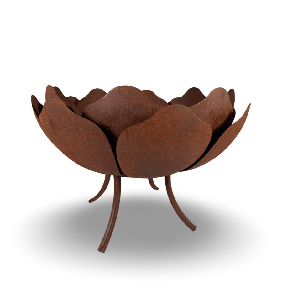 Ingen vinter utan eld! Samla familj och vänner runt detta eldfat för en mysig kväll. Rustik Eldkorg / eldskål / eldfat i rostbrunt järn som är lika dekorativ som användbar. Formad som en blomma.