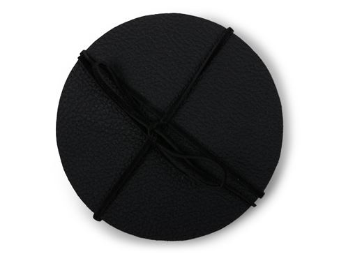 Mått: 10 x 10 x 0,2 cm Färg: Svart Material: Konstläder Finns underlägg och servettring 4-pack i samma serie