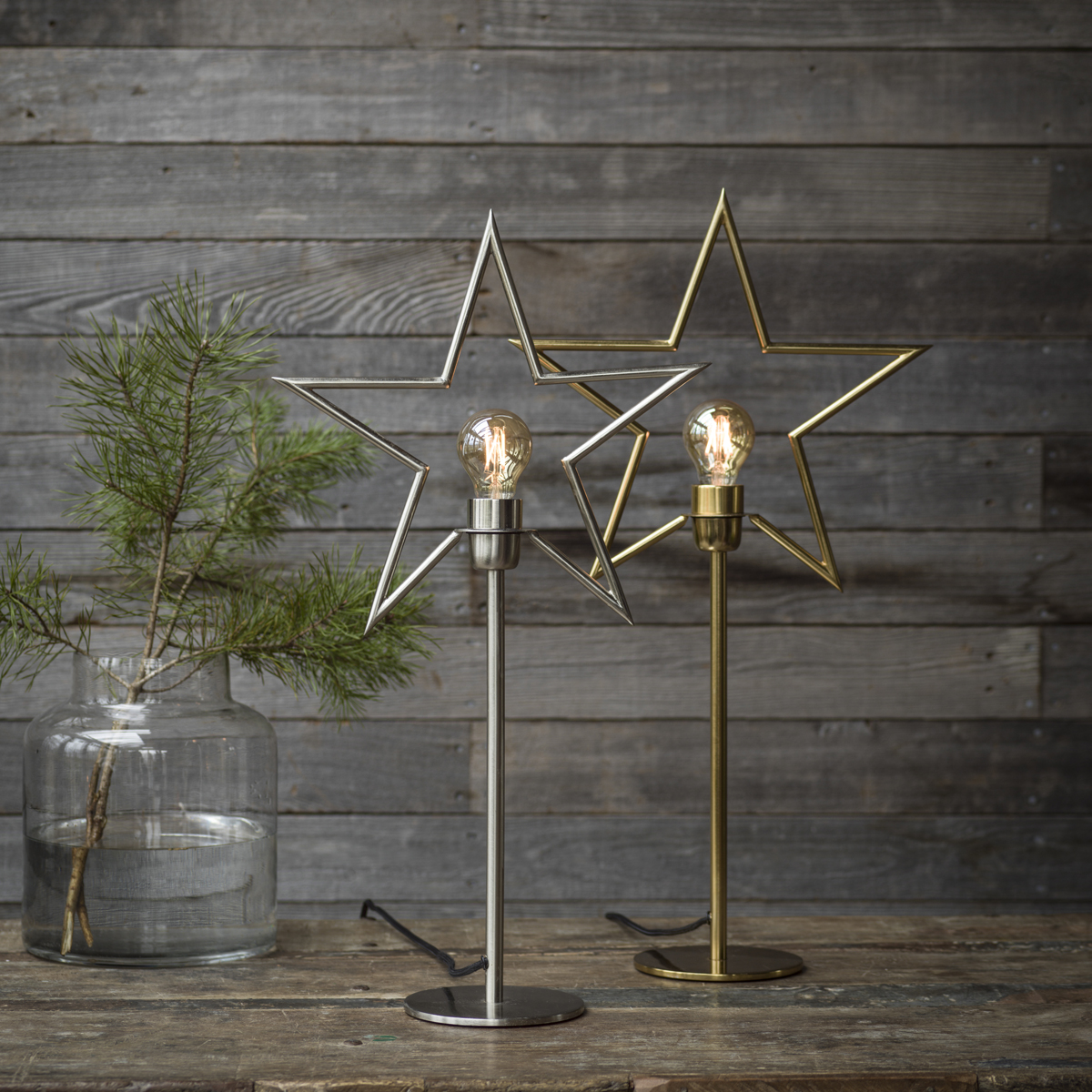Klassisk och stilren julstjärna på fot / bordsstjärna i rå metall industristil. Snygg lampa att ställa fram vid jul men kan även användas resten av året. Byt då bara ut stjärnan mot en snygg lampskärm. Bordsstjärnan har en svart textilsladd med väggkontakt. Mått: H 82 x B 35 cm E27-sockel, max 40 W Sladdlängd: 1,5 m Färg: Råsilver Sladdlängd: 1,5 m Färg: Råsilver