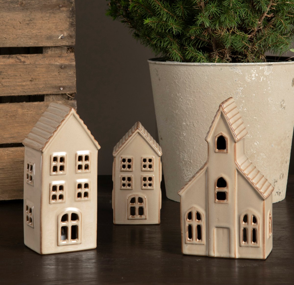 Ljushus – Huslykta Beige Keramik med LED belysning H 17 cm