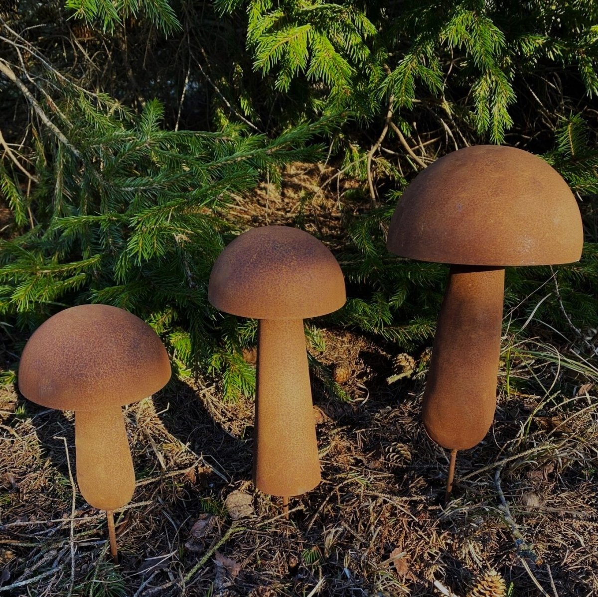 Fin rostig svamp att dekorera med i trädgården. Stick ner dem i en kruka eller plantering för ett fint blickfång.