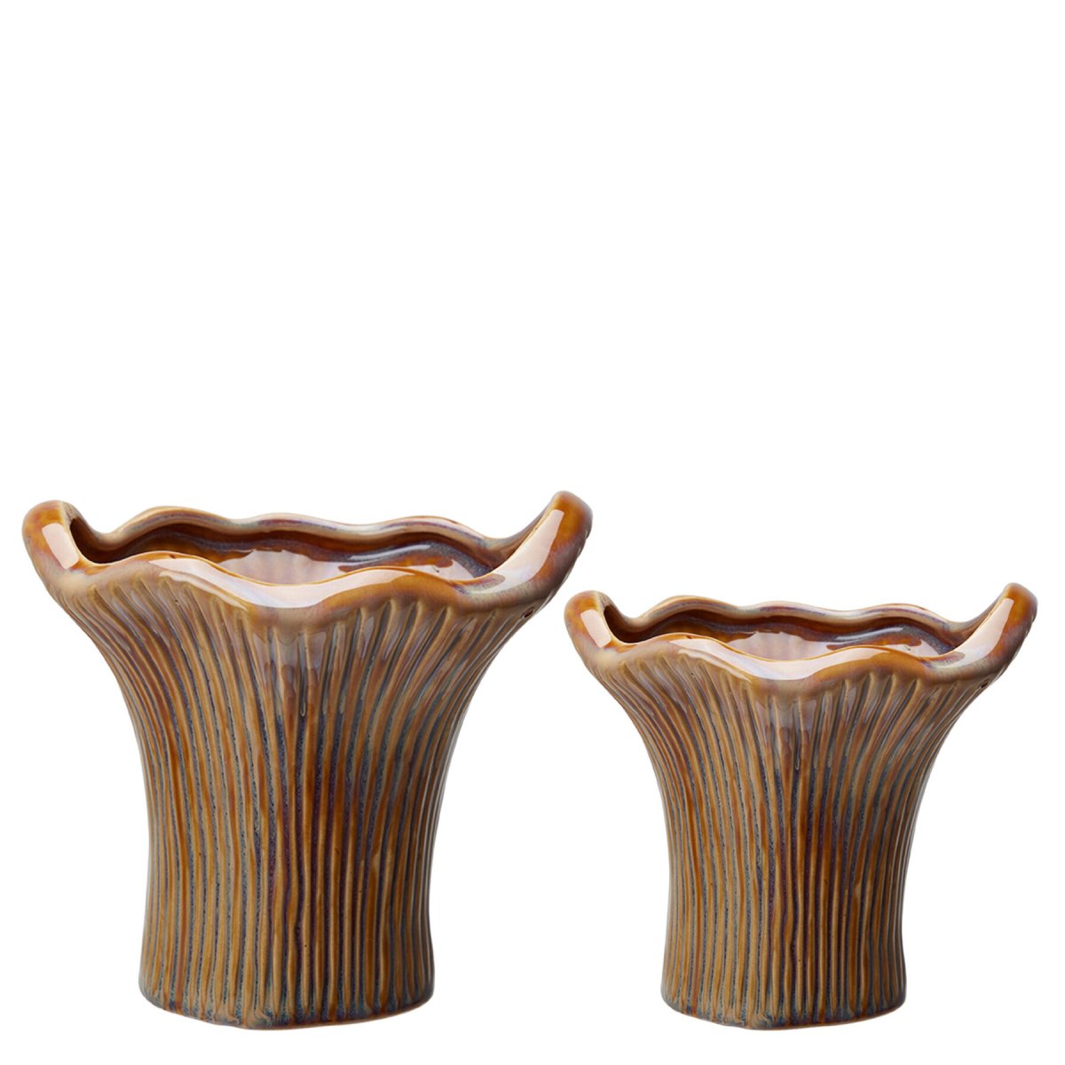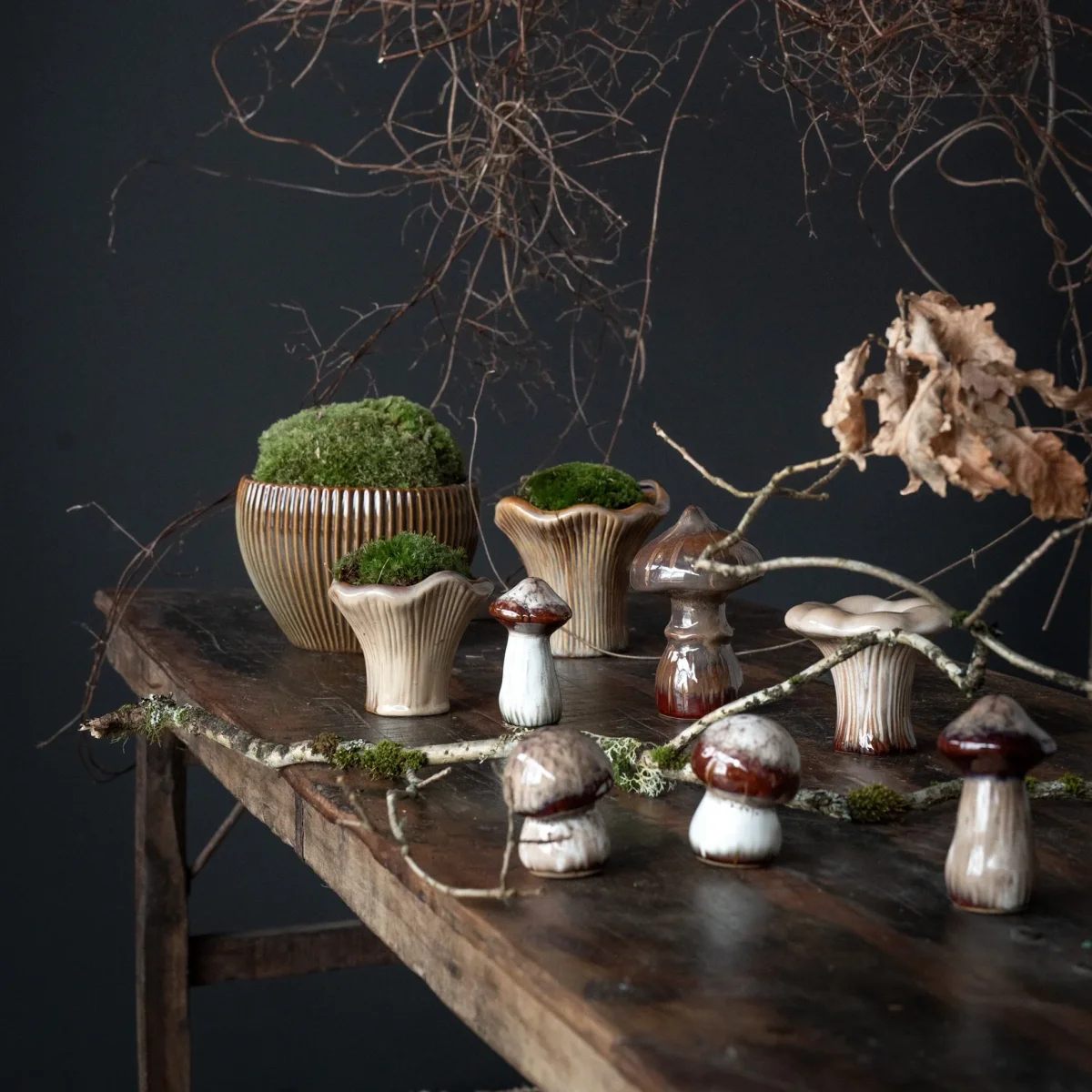 Dekorativ kruka i form av en svamp / kantarell i brunmelerat porslin. Den perfekta detaljen till höstens inredning.